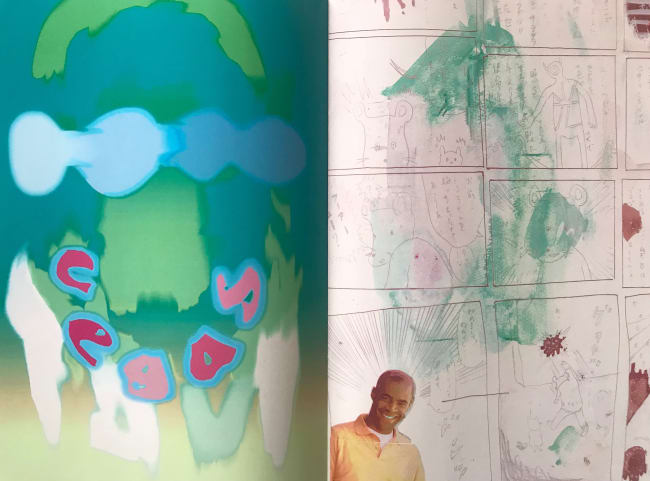 dinamishaisuke also goes by the name emeraldclitoris. Large-format art book including paintings, comics, and digital paintings and collages. Kind of like the internet threw up in a sweet way. 36 pages. 11.75"x8.5". $10.